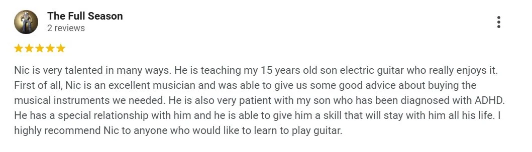 As you can see from above, Nic teachers a variety of musical genres including: